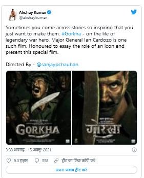‘गोरखा’ विजयदशमी पर नई फ़िल्मका एलान….अक्षय कुमार ने फ़िल्म के फ़र्स्ट लुक पोस्टर भी जारी…