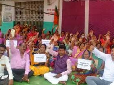 धरना चावल घोटाला के विरोध में…. भाजपाइयों ने दिया राशन दुकानों के सामने धरना प्रदर्शन….
