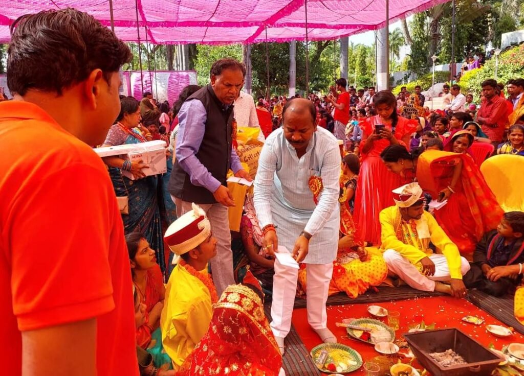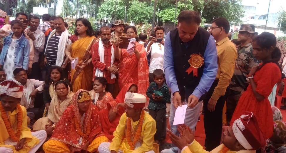 सामूहिक विवाह में जिले के भरतपुर विकासखंड के 48, खड़गवां विकासखंड के 46 तथा मनेंद्रगढ़ के 41 जोड़ों का विवाह रीति-रिवाज से संपन्न हुआ. भरतपुर सोनहत विधानसभा विधायक एवं सरगुजा विकास प्राधिकरण के उपाध्यक्ष श्री गुलाब कामरोन, मनेन्द्रगढ़ विधानसभा विधायक डॉ. विनय जायसवाल, मनेन्द्रगढ़ नगर पालिका अध्यक्ष डॉ. श्रीमती प्रभा पटेल, जिलाध्यक्ष डॉ. विनय शंकर सिंह, उपाध्यक्ष श्री राजेश साहू, नगर पालिका मनेन्द्रगढ़ उपाध्यक्ष श्री कृष्ण मुरारी तिवारी, पार्षद, नगर पंचायत झागरखंड अध्यक्ष श्री रजनीश पाण्डेय, जिला पुलिस अधीक्षक श्री टी.आर. कोसिमा, वन प्रमंडल पदाधिकारी मनेन्द्रगढ़ श्री पटेल, अनुमंडल पदाधिकारी राजस्व मनेन्द्रगढ श्री अभिषेक कुमार, तहसीलदार मनेन्द्रगढ़ श्री अशोक सिंह सहित अन्य विभागीय अधिकारी एवं विभिन्न विभागों के कर्मचारी उपस्थित थे. विभिन्न समाजसेवियों की ओर से नवविवाहित जोड़ों को कपड़े, चादर, कंबल और आभूषण उपहार स्वरूप भेंट किए गए। एसईसीएल हसदेव क्षेत्र चिरमिरी क्षेत्र महिला मंडल समिति ने दूल्हा-दुल्हन को उपहार स्वरूप पंखे दिए। नई दुल्हनों को नगर मनेंद्रगढ़ के बॉम्बे कलेक्शन द्वारा साड़ी चादरें उपहार में दी गईं।