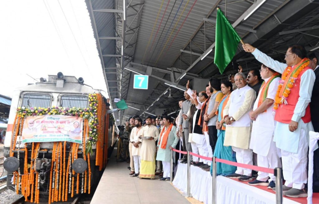मुख्यमंत्री श्री विष्णु देव साय ने आज राजधानी के रेल्वे स्टेशन से अयोध्या स्पेशल गाड़ी को हरी झंडी दिखा कर किया रवाना…..