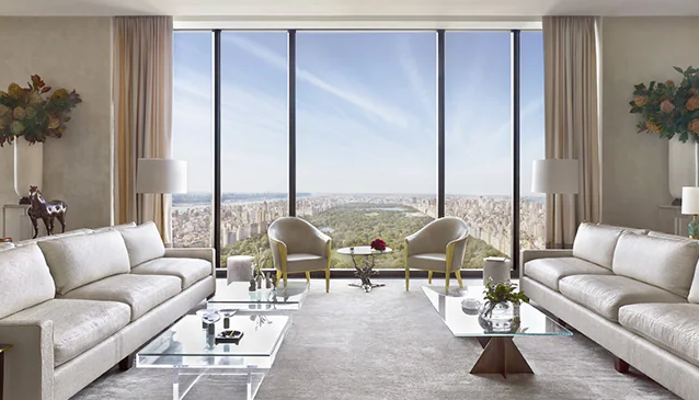 91 मंजिला गगनचुंबी इमारत में 46 फुल-फ्लोर और डुप्लेक्स निवास हैं। डिजाइनरों द्वारा इस महीने जारी की गई तस्वीरों में चूना पत्थर, संगमरमर, काले रंग के स्टील, और मखमली, धुएँ के भूरे रंग के ठोस ओक में फ़र्श और पिकासो और मैटिस की मूल कलाकृतियों में भव्य लॉबी दिखाई देती हैं।