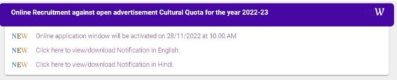 - अब आपको Online application window will be activated on 28/11/2022 at 10.00 AM इस लिकं पर क्लिक करना होगा