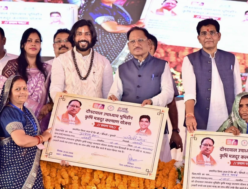 रायपुर, 25 मार्च 2026-किसानों की खुशियों भरी होली के बाद अब भूमिहीन कृषि श्रमिकों के लिए भी यह नवरात्रि समृद्धि और आत्मविश्वास का संदेश लेकर आई है। छत्तीसगढ़ में सुशासन सरकार की योजनाएं अब सीधे जनजीवन में परिवर्तन का आधार बनती दिख रही हैं। मुख्यमंत्री  विष्णु देव साय ने बलौदाबाजार जिले में दीनदयाल उपाध्याय भूमिहीन कृषि मजदूर कल्याण योजना के अंतर्गत आयोजित कार्यक्रम को संबोधित करते हुए यह बात कही।मुख्यमंत्री  विष्णुदेव साय ने आज बलौदा बाजार में आयोजित कार्यक्रम में प्रदेश के 4 लाख 95 हजार 965 भूमिहीन कृषि मजदूरों के खातों में 495 करोड़ 96 लाख 50 हजार रुपये की राशि अंतरित की। उन्होंने कहा कि यह पहल केवल आर्थिक सहायता नहीं, बल्कि श्रम और सम्मान को सशक्त करने की दिशा में एक निर्णायक कदम है।