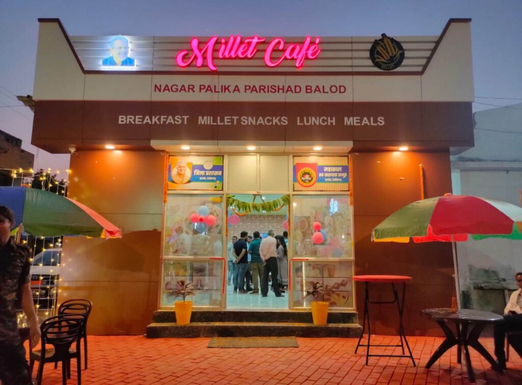 राज्य का पहला बाजरा कैफे रायगढ़ जिले में जिला प्रशासन के सहयोग से मई 2022 में शुरू किया गया था। इसका संचालन महिलाओं का एक समूह करता है। अपनी स्थापना के कुछ महीनों के भीतर ही यहां की मासिक आय 3 लाख रुपये को पार कर गई है। रायगढ़ के बाद कोरबा जिले में मिलेट कैफे की शुरुआत हुई। इसी कड़ी में अब बालोद में जिले का पहला मिलेट कैफे शुरू हो गया है। इस कैफे में लोग बाजरा के पौष्टिक व्यंजनों का लुत्फ उठा सकेंगे। इस कैफे में कोदो, कुटकी, रागी और अन्य छोटे अनाजों से बने विभिन्न व्यंजन- इडली, डोसा, पोहा, उपमा, भजिया, खीर, हलवा, माल्ट, कुकीज आदि आम जनता के लिए उपलब्ध होंगे।