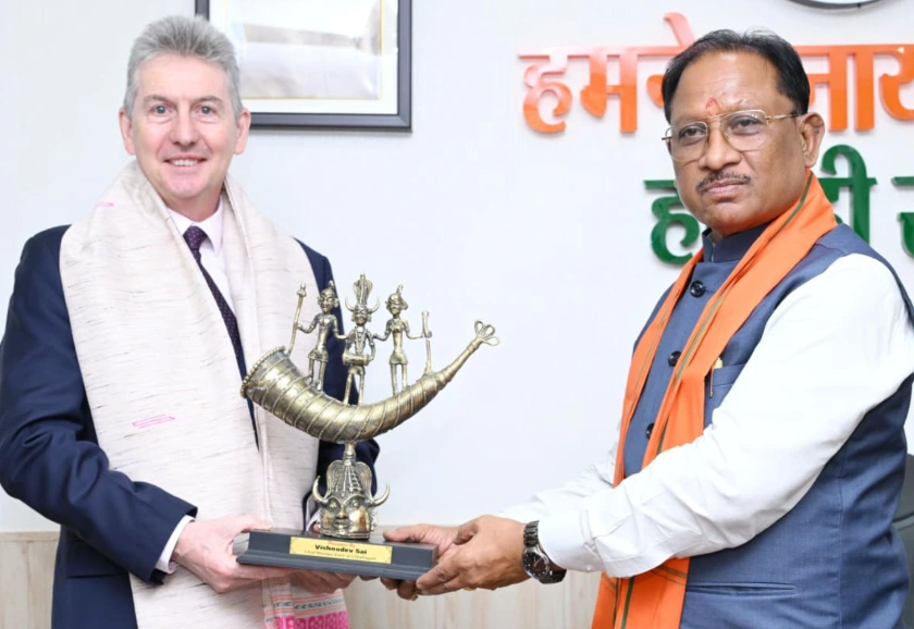 मुख्यमंत्री विष्णु देव साय से आस्ट्रेलिया के महावाणिज्य दूत बर्नार्ड लिंच ने की सौजन्य मुलाकात