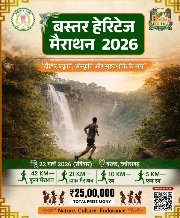 ‘रन फॉर नेचर, रन फॉर कल्चर’ (प्रकृति के लिए दौड़ो, संस्कृति के लिए दौड़ो) की थीम पर आधारित यह मैराथन बस्तर की प्राकृतिक धरोहर और जनजातीय संस्कृति को देशभर के सामने प्रस्तुत करने का एक सशक्त माध्यम बनेगी। मुख्यमंत्री विष्णु देव साय ने देशभर के खिलाड़ियों, फिटनेस प्रेमियों और पर्यटकों से इस ऐतिहासिक आयोजन में भाग लेने की अपील करते हुए कहा कि यह अवसर न केवल दौड़ने का है, बल्कि बस्तर को करीब से जानने और उसकी विरासत को महसूस करने का भी है। इच्छुक प्रतिभागी https://www.bastarheritage. run/registration लिंक के माध्यम से या आधिकारिक पोस्टर में दिए गए क्यूआर कोड को स्कैन कर अपना पंजीकरण करा सकते हैं।