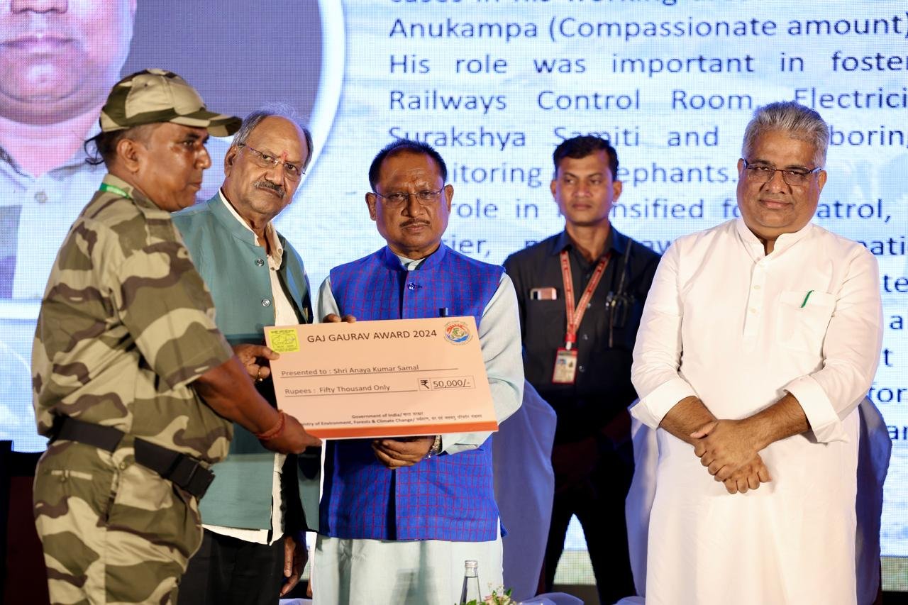 केन्द्रीय मंत्री श्री यादव और मुख्यमंत्री श्री साय ने हाथी संरक्षण एवं प्रबंधन के क्षेत्र में अनुकरणीय योगदान के लिए विजेताओं को गज गौरव पुरस्कार प्रदान किये। इस कार्यक्रम के दौरान, प्रतिष्ठित गज गौरव पुरस्कार (1) स्वर्गीय श्री बुबुल गोगोई, (मरणोपरांत) महावत, असम (2) श्री दीनबंधु बर्मन, प्रमुख महावत एवं टीम, पश्चिम बंगाल (3) श्री अनय कुमार सामल, पैरा वन कार्यकर्ता, ओडिशा और (4) श्रीमती संघमित्रा महंत, वन रक्षक, ओडिशा को उनकी अनुकरणीय सेवाओं के लिए प्रदान किए गए है।