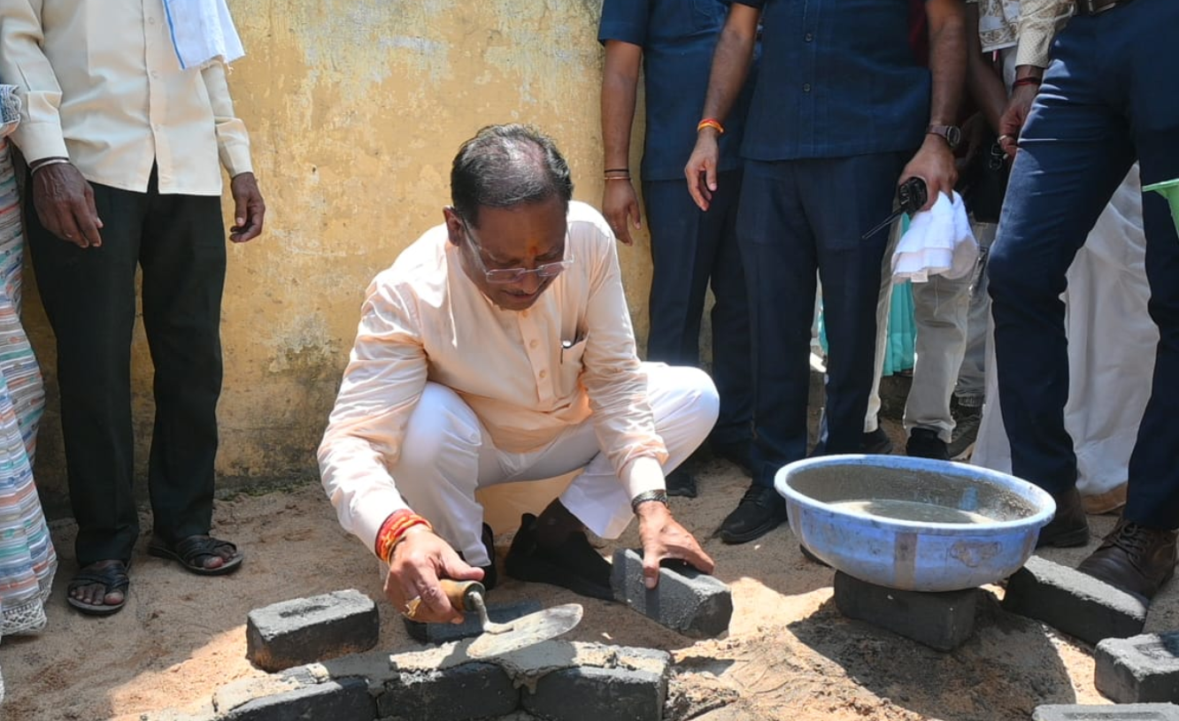 मुख्यमंत्री ने राज मिस्त्री बन सोखता गड्ढा के लिए की ईट जोड़ाई