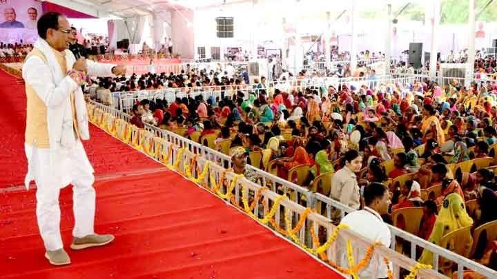 मुख्यमंत्री श्री चौहान ने कहा कि सरकार द्वारा बहनों की जिंदगी बनाने का कार्य किया जा रहा है। बहनों को मजबूर नहीं मजबूत बनाया जा रहा है। पहले बेटा-बेटी में फर्क किया जाता था। मैंने मुख्यमंत्री बनने के बाद लाड़ली लक्ष्मी योजना और कन्या विवाह/निकाह योजना बनाई। लाड़ली बहना योजना में प्रति माह 1000 रूपये बहनों के खाते में पहुँच रहे हैं। आने वाले समय में यह राशि 3000 रूपये महीने तक हो जाएगी। बहनों के लिए सम्पत्ति की रजिस्ट्री में स्टाम्प शुल्क 1% है। पंचायत एवं नगरीय निकाय चुनावों में बहनों की हिस्सेदारी बढ़ रही है। इतना ही नहीं स्व-सहायता समूह के माध्यम से महिलाओं को मजबूत किया जाएगा। बहन-बेटी इज्जत के साथ जिये, इसका ध्यान रखा जा रहा है। शराब के अहाते बंद कराए गए हैं। जो बहनों पर अत्याचार करेंगे, उन दुष्टों को कठोर दंड देंगे। अत्याचारियों के घरों पर बुलडोजर चलाए जाएंगे। प्रदेश में दुराचारियों को फाँसी का प्रावधान किया गया है।