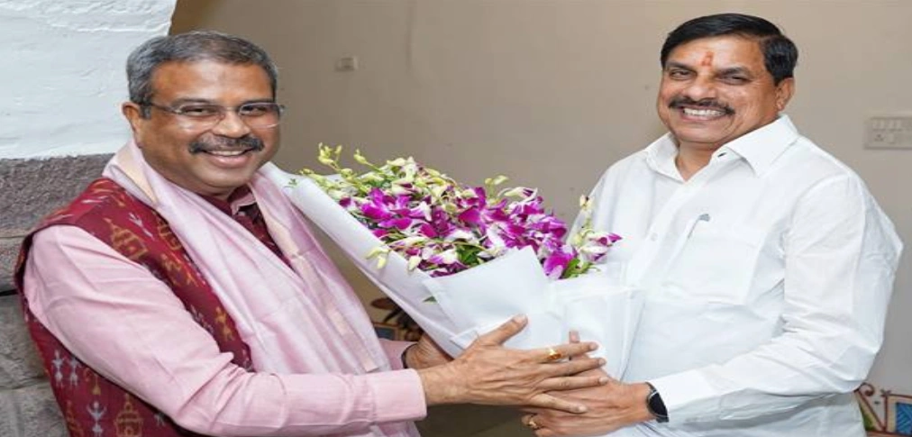 मुख्यमंत्री डॉ. यादव ने केंद्रीय मंत्री प्रधान का मुख्यमंत्री निवास में किया स्वागत