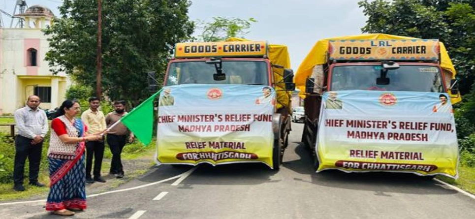 भोपाल :  मुख्यमंत्री डॉ. मोहन यादव ने छत्तीसगढ़ राज्य में अतिवृष्टि एवं बाढ़ प्रभावितों की मदद के लिए मानवीय पहल की है। बाढ़ प्रभावितों की मदद के लिए शुक्रवार को बालाघाट से राहत सामग्री लेकर 02 ट्रक छत्तीसगढ़ के रायपुर के लिए रवाना किये गए है। बालाघाट-सिवनी लोकसभा क्षेत्र की सांसद श्रीमती भारती पारधी ने राहत सामग्री ट्रकों को झण्डी दिखाकर बालाघाट से रायपुर के लिए रवाना किया। मुख्यमंत्री डॉ. मोहन यादव की पहल पर छत्तीसगढ़ के बाढ़ प्रभावितों के लिए राहत सामग्री के रूप में बर्तन, कपड़े, चादर, कम्बल एवं राशन सामग्री शामिल है। प्रभावितों के लिए 100 क्विंटल चावल, 10 क्विंटल दाल, 15 क्विंटल नमक, 1500 कम्बल, 02 हजार चादर एवं 950 बर्तन सेट भेजे गए है।