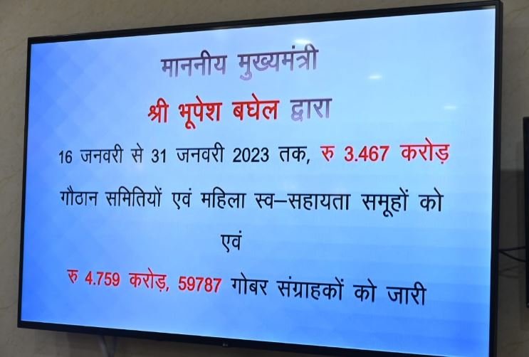 गौठान से जुड़े पशुपालकों सहित महिला समूहों को बधाई देते हुए मुख्यमंत्री ने कहा कि यह बहुत अच्छी बात है कि वे लगातार रिकॉर्डिंग कर रहे हैं. 8.23 करोड़ चुकाने के बाद यह रकम 403 करोड़ 58 लाख रुपए हो जाती है। इसी प्रकार गोबर विक्रेताओं को 4.76 करोड़ रुपये भुगतान करने पर राशि 206 लाख 49 करोड़ रुपये हो जायेगी. उन्होंने गाय के गोबर से बिजली उत्पादन शुरू करने वाले पावर प्लांट पर खुशी जाहिर की और इन इकाइयों से बनने वाली बिजली को पावर ग्रिड से जोड़ने और बिजली की कीमत तय करने का आदेश दिया.