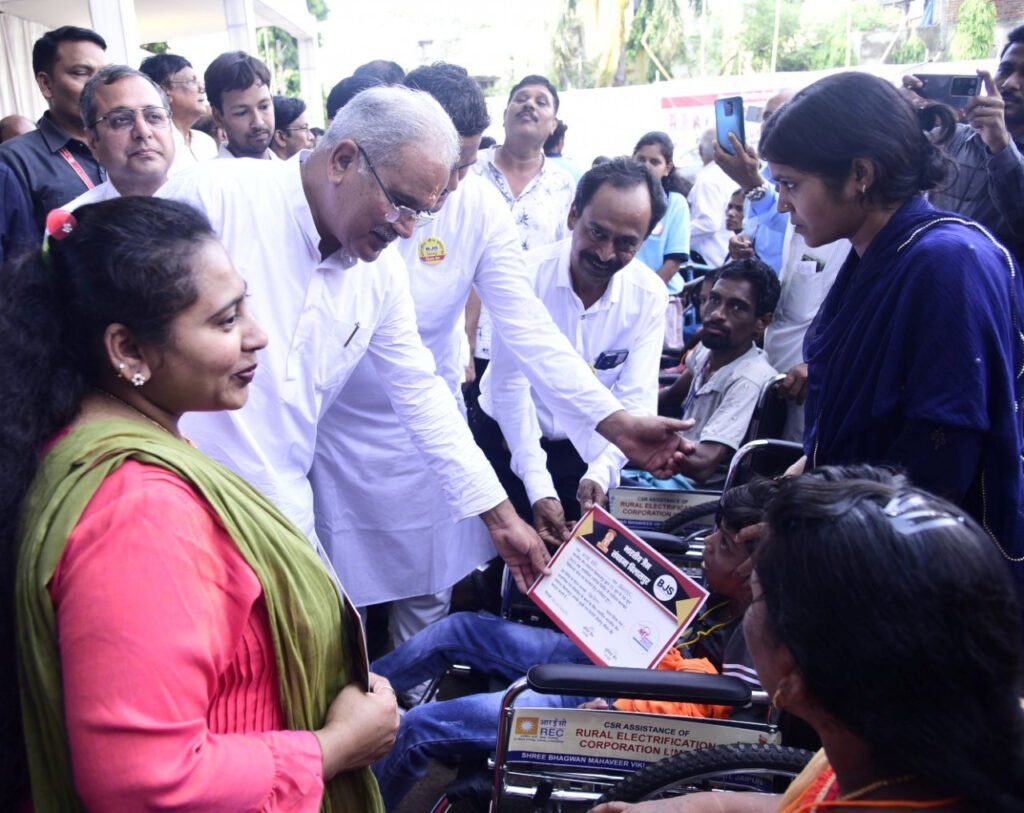 मुख्यमंत्री श्री भूपेश बघेल ने दिए विकलांगों को व्हीलचेयर, ट्राइसाइकिल, बैसाखी और अन्य उपकरण उपलब्ध