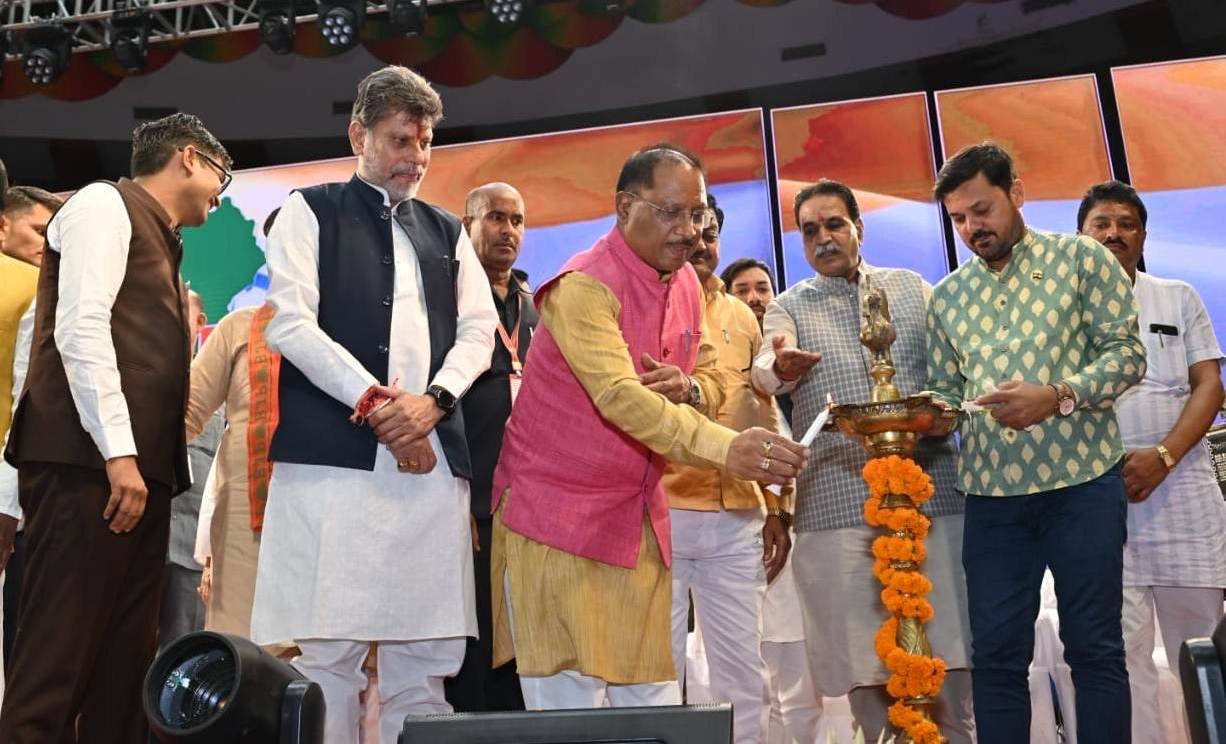 मुख्यमंत्री श्री विष्णु देव साय की मौजूदगी में आज राजधानी रायपुर के इंडोर स्टेडियम में जोहार तिरंगा कार्यक्रम का भव्य आयोजन किया गया है। संस्कृति विभाग द्वारा आयोजित इस कार्यक्रम में देश के मशहूर गायक श्री कैलाश खेर एवं साथियों ने देशभक्ति गीतों की सुरमयी प्रस्तुति दी। राष्ट्रीय गीत ‘वन्दे मातरम्‘ और ‘जान है हमारी है तिरंगा‘ गीत पर मुख्यमंत्री श्री विष्णु देव साय सहित उपस्थित लोगों ने देशभक्ति भाव से ओतप्रोेत होकर सुर से सुर मिलाया। मुख्यमंत्री श्री विष्णु देव साय द्वारा इससे पूर्व ‘जोहार तिरंगा‘ कार्यक्रम का शुभारंभ दीप प्रज्ज्वलन और छत्तीसगढ़ महतारी के छाया चित्र पर माल्यार्पण कर किया गया।