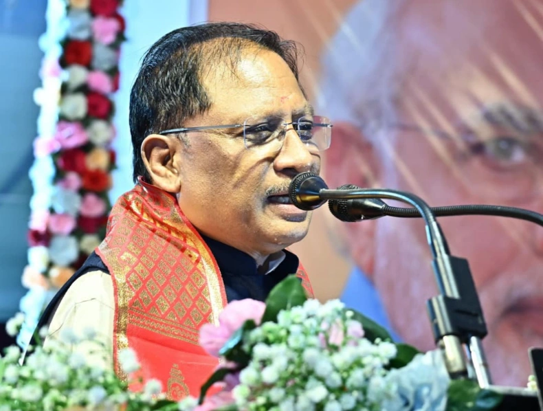 रायपुर 18 सितंबर 2025- मुख्यमंत्री विष्णु देव साय आज शाम महादेव घाट, रायपुर में आयोजित खारुन मईया समरसता भव्य महाआरती में शामिल हुए। इस भव्य आयोजन का संयुक्त रूप से आयोजन सनातन ध्वज वाहिनी एवं महिला मोर्चा द्वारा देश के यशस्वी प्रधानमंत्री नरेंद्र मोदी के जन्मदिन के उपलक्ष्य में किया गया। इस अवसर पर खारुन नदी तट पर 21 सौ दीपों का दीपदान भी किया गया। मुख्यमंत्री साय ने कार्यक्रम को संबोधित करते हुए कहा कि यह हमारा सौभाग्य है कि प्रधानमंत्री  नरेंद्र मोदी के कुशल नेतृत्व में देश का गौरव पूरी दुनिया में बढ़ा है। वे आज आधुनिक भारत के शिल्पकार हैं और विकसित भारत के निर्माण के लिए निरंतर प्रयासरत हैं। इसका लाभ देश की 140 करोड़ जनता को मिल रहा है। उन्होंने 2047 तक भारत को विकसित राष्ट्र बनाने का संकल्प लिया है। उसके अनुरूप छत्तीसगढ़ को विकसित राज्य का दर्जा दिलाने के लिए हमारी डबल इंजन की सरकार दृढ़ता और प्रतिबद्धता के साथ हर मोर्चे पर कार्य कर रही है।