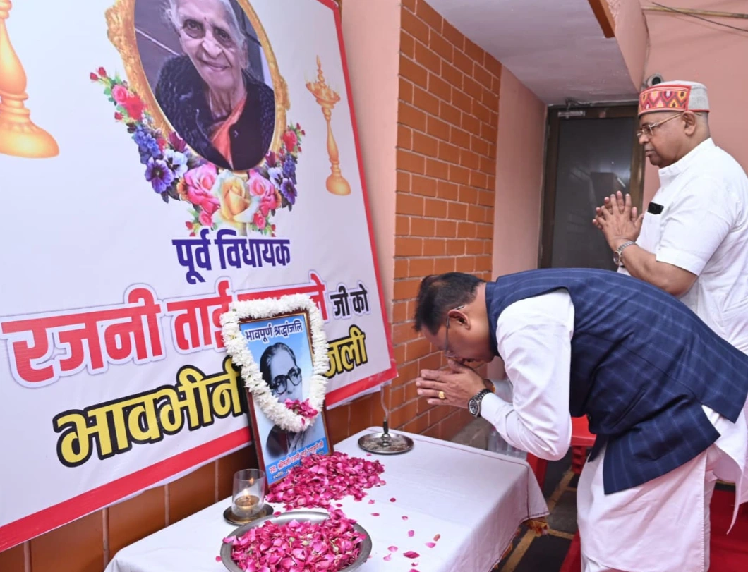 मुख्यमंत्री साय ने रायपुर की पहली महिला विधायक स्वर्गीय रजनी ताई उपासने के निवास पहुंचकर अर्पित की श्रद्धांजलि