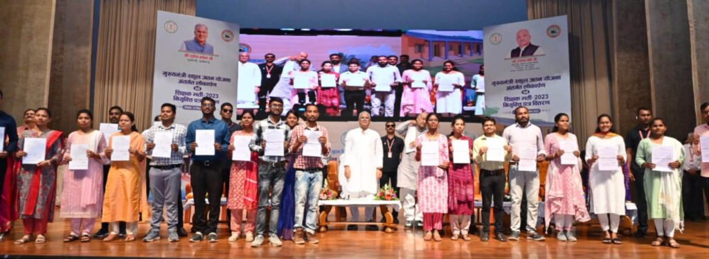 उन्होंने नवनियुक्त शिक्षकों से कहा कि आप राष्ट्रनिर्माता हैं। समाज को दिशा दिखाते हैं। कोरोना में शिक्षकों ने बहुत अच्छा काम किया। ऑनलाइन पढ़ाई कराई। कोरोना की वजह से पढ़ाई का लॉस हमारे राज्य में सबसे कम रहा। आप सभी ओल्ड पेंशन के हकदार होंगे। आपका भविष्य भी हमने सुरक्षित किया है। आप छत्तीसगढ़ के बच्चों के भविष्य को गढ़ने में अपना पूर्ण योगदान दें। पहले अंग्रेजी स्कूल शासन द्वारा संचालित नहीं होता था। अब यह शासन द्वारा संचालित है। यहां पढ़ाई अच्छी है। इसलिए एडमिशन की भी काफी डिमांड है।