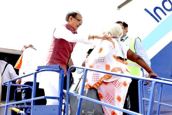 मुख्यमंत्री श्री चौहान राजा भोज हवाई अड्डे से मुख्यमंत्री तीर्थ दर्शन योजना के तहत हवाई यात्रा के शुभारंभ के अवसर पर तीर्थयात्रियों से बातचीत कर रहे थे. विमान से तीर्थ यात्रा योजना का मुख्यमंत्री ने दीप जलाकर शुभारंभ किया। गरीब बुजुर्ग तीर्थयात्रियों को हवाई यात्रा की सुविधा देने वाला मध्यप्रदेश देश का पहला राज्य है। विमान से प्रयागराज की पहली तीर्थ यात्रा में 32 बुजुर्ग तीर्थयात्री शामिल हुए। जिनमें 24 पुरुष और 8 महिला तीर्थयात्री शामिल हैं। मुख्यमंत्री श्री चौहान ने बुजुर्ग तीर्थयात्रियों को शाल-फूल भेंट कर और माल्यार्पण कर स्वागत किया. तीर्थयात्री श्रीमती कृष्णा चौबे को टोकन के रूप में बोर्डिंग पास की प्रतिकृति दी। मुख्यमंत्री श्री चौहान ने बुजुर्गों का आशीर्वाद प्राप्त किया। मुख्यमंत्री श्री चौहान ने स्मृतियों को हल्का करने के लिए बुजुर्ग तीर्थयात्रियों के साथ ग्रुप फोटो भी खिंचवाई और ढोल-नगाड़ों व धार्मिक झंडों के साथ तीर्थयात्रियों को एयरपोर्ट में प्रवेश कराया. मुख्यमंत्री ने हवाईअड्डे से बुजुर्गों को तीर्थ यात्रा पर ले जाने वाली इंडिगो की नियमित उड़ान को हरी झंडी दिखाकर रवाना किया। विमान से प्रयागराज जा रहे भावुक बुजुर्गों ने मुख्यमंत्री श्री चौहान को आशीर्वाद दिया। तीर्थयात्रियों को ले जाने वाली एक नियमित इंडिगो उड़ान को हवाईअड्डे से हरी झंडी दिखाकर रवाना किया गया। विमान से प्रयागराज जा रहे भावुक बुजुर्गों ने मुख्यमंत्री श्री चौहान को आशीर्वाद दिया। तीर्थयात्रियों को ले जाने वाली एक नियमित इंडिगो उड़ान को हवाईअड्डे से हरी झंडी दिखाकर रवाना किया गया। विमान से प्रयागराज जा रहे भावुक बुजुर्गों ने मुख्यमंत्री श्री चौहान को आशीर्वाद दिया।तीर्थयात्रा भगवान की भक्ति में डूबने की भावना प्रदान करती है