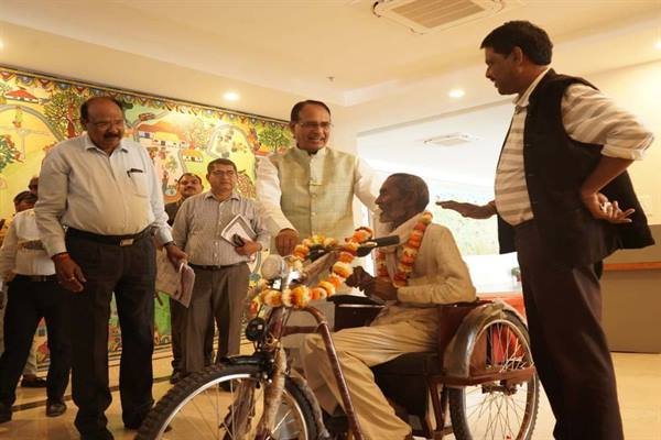 मुख्यमंत्री श्री चौहान ने श्री लाल सिंह को ट्राइसाइकिल भेंट की