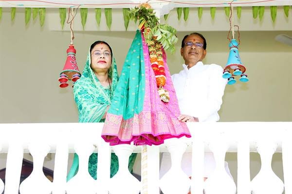 गुड़ी पड़वा पर मुख्यमंत्री श्री चौहान अपनी पत्नी श्रीमती के साथ. साधना सिंह ने मुख्यमंत्री आवास पर गुड़ी लगवाई। यह गुड़ी शुभ प्रतीक और विजय पताका का रूप धारण करती है। गुड़ी पाड़ा के दिन घर के दरवाजे पर गुडिया रखने की परंपरा है। यह महाराष्ट्र में अधिक प्रचलित है। भारतीय सांस्कृतिक परंपरा में शुभ कार्यों की शुरुआत गुड़ी पड़ से होती है।