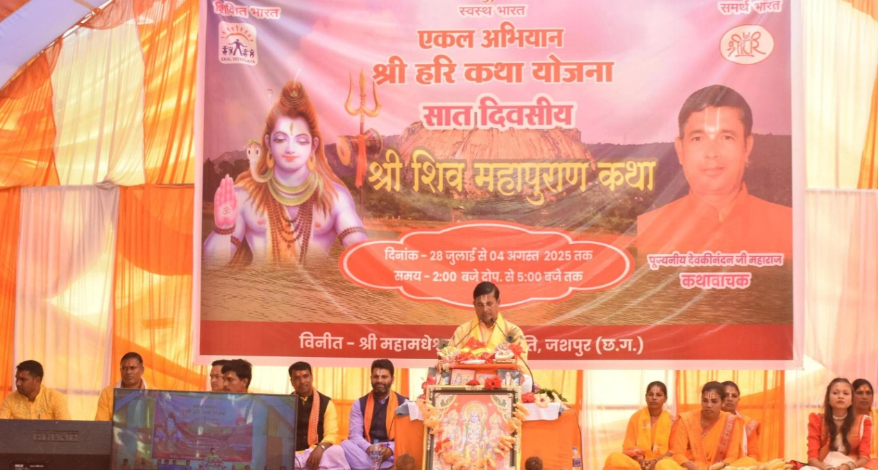 मुख्यमंत्री विष्णु देव साय दिव्य शिव महापुराण कथा के समापन समारोह में वर्चुअली हुए शामिल