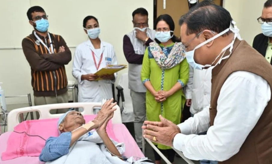 रायपुर 10 दिसंबर 2025- मुख्यमंत्री विष्णु देव साय आज शाम राजधानी रायपुर स्थित अखिल भारतीय आयुर्विज्ञान संस्थान (एम्स) पहुँचे और वहां उपचाररत भारतीय ज्ञानपीठ पुरस्कार से सम्मानित वरिष्ठ साहित्यकार विनोद कुमार शुक्ला से मुलाकात कर उनके शीघ्र स्वास्थ्य लाभ की कामना की। मुख्यमंत्री साय ने चिकित्सकों से उनके स्वास्थ्य की जानकारी प्राप्त की और बेहतर चिकित्सा व्यवस्था सुनिश्चित करने के निर्देश भी दिए। मुख्यमंत्री साय ने कहा कि विनोद कुमार शुक्ल भारतीय साहित्य की अमूल्य धरोहर हैं। उनकी सृजनशीलता, संवेदना और सरल भाषा में गहन अनुभूतियों की अभिव्यक्ति देश और प्रदेश—दोनों को गौरवान्वित करती है। इस अवसर पर मुख्यमंत्री के मीडिया सलाहकार पंकज झा एवं छत्तीसगढ़ साहित्य अकादमी के अध्यक्ष शशांक शर्मा उपस्थित थे।
