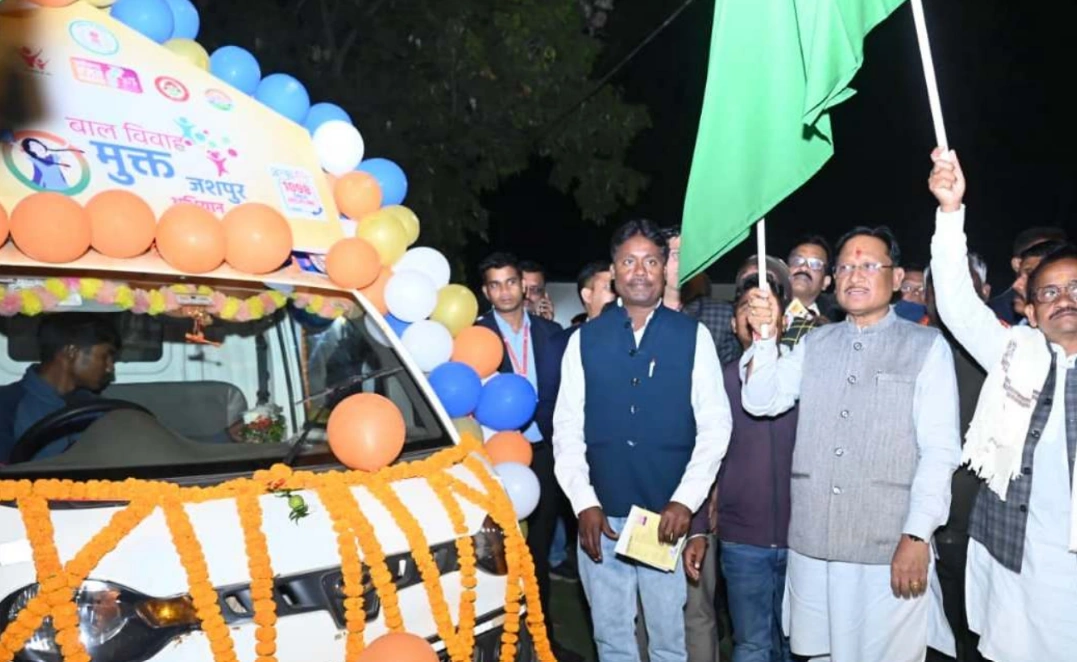 रायपुर, 29 दिसंबर 2025- मुख्यमंत्री  विष्णुदेव साय ने आज फरसाबहार स्थित सामुदायिक स्वास्थ्य केंद्र परिसर से बाल विवाह मुक्त जशपुर अभियान रथ को हरी झंडी दिखाकर रवाना किया। यह जागरूकता रथ जिले के शहरी क्षेत्रों के साथ-साथ दूरस्थ ग्रामीण अंचलों में भ्रमण कर लोगों को बाल विवाह के दुष्परिणामों के प्रति जागरूक करेगा। इस अवसर पर मुख्यमंत्री ने कहा कि बाल विवाह बच्चों के भविष्य के साथ खिलवाड़ है और इसे रोकना समाज की सामूहिक जिम्मेदारी है। उन्होंने आमजन से अपील की कि यदि कहीं भी बाल विवाह की आशंका हो तो बिना झिझक 1098 पर सूचना दें और इस सामाजिक बुराई के रोकथाम में सहभागी बनें।