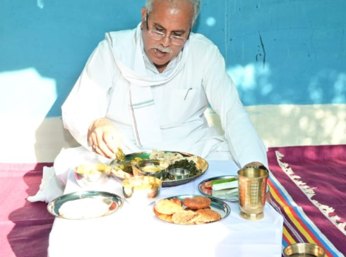 CM भूपेश ने गांव जाकर किसान के घर में खाया खाना, इतने तरह के थे व्यंजन