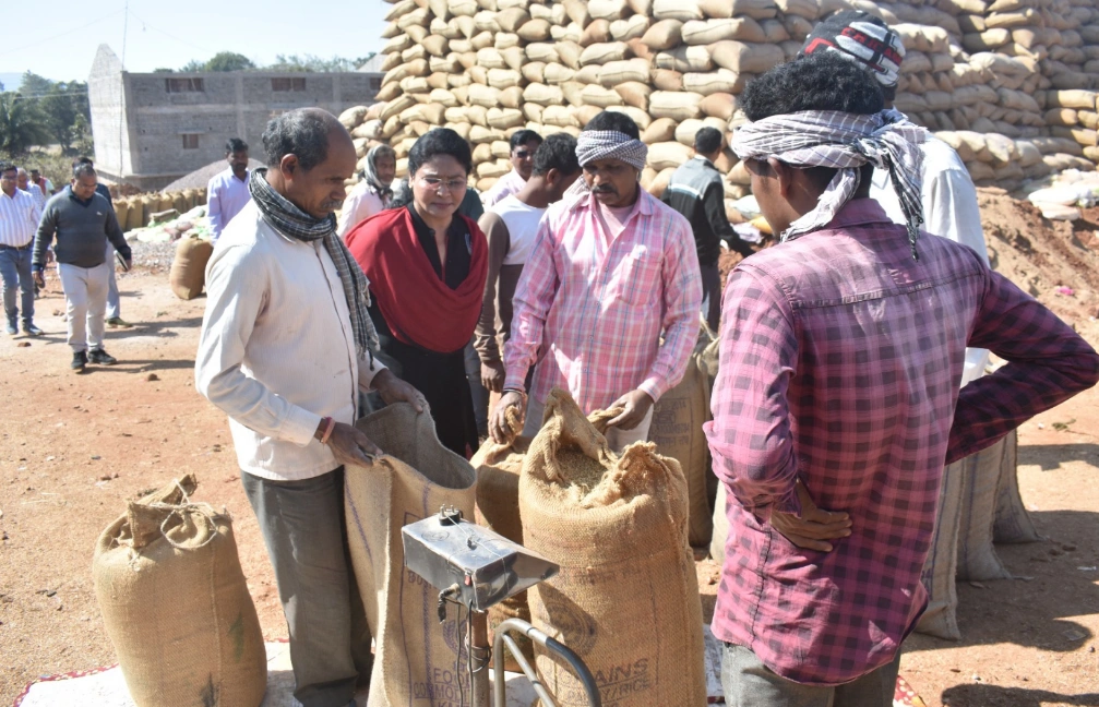 रकबा समर्पण और सत्यापन पर विशेष जोर-धान खरीदी केन्द्र गैंजी के निरीक्षण के दौरान कलेक्टर ने रकबा समर्पण की स्थिति की जानकारी लेते हुए एक टोकन वाले किसानों के साथ-साथ 02 एकड़ से अधिक एवं 10 एकड़ से अधिक रकबा रखने वाले किसानों की संख्या की भी समीक्षा की। इस दौरान उन्होंने धान विक्रय हेतु पहुँचे किसान  दीपक यामले से चर्चा कर उन्हें धान बिक्री के पश्चात शेष रकबे का अनिवार्य रूप से समर्पण करने की समझाइश दी। किसान द्वारा घर में शेष लगभग 130 क्विंटल धान रखे होने की जानकारी पर कलेक्टर ने ग्रामीण कृषि विस्तार अधिकारी, पटवारी एवं संबंधित अधिकारियों की संयुक्त टीम को किसान के घर भेजकर भौतिक सत्यापन करने के निर्देश दिए।