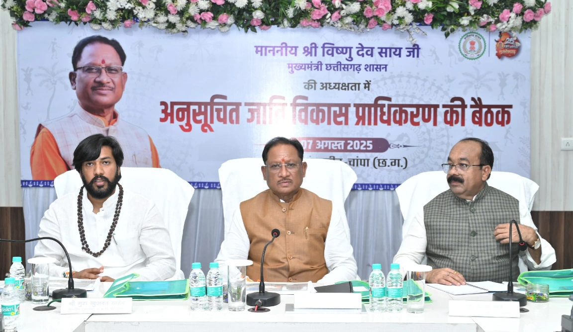 रायपुर, 7 अगस्त 2025: मुख्यमंत्री विष्णु देव साय की अध्यक्षता में आज जांजगीर-चांपा जिले के जिला पंचायत सभाकक्ष में आयोजित अनुसूचित जाति विकास प्राधिकरण की बैठक में प्राधिकरण के बजट को 50 करोड़ से बढ़ाकर 75 करोड़ रुपये करने की स्वीकृति दी गई। मुख्यमंत्री साय ने निर्देश दिए कि प्राधिकरण मद से स्वीकृत कार्यों को सभी कलेक्टर्स गंभीरता से लें और उन्हें उच्च गुणवत्ता के साथ निर्धारित समयसीमा में पूर्ण कराना सुनिश्चित करें। उन्होंने कहा कि अब प्राधिकरण की बैठक हर वर्ष समय पर आयोजित होगी और कार्यों की गहन समीक्षा की जाएगी। मुख्यमंत्री साय ने कहा कि संविधान की मंशा के अनुरूप अनुसूचित जाति समुदाय के सामाजिक, सांस्कृतिक और आर्थिक उत्थान के लिए सरकार पूरी तरह प्रतिबद्ध है। उन्होंने कहा कि बाबासाहेब डॉ. भीमराव अंबेडकर द्वारा प्रदत्त संवैधानिक अधिकारों की रक्षा करते हुए हम बाबा गुरु घासीदास जी के ‘मनखे-मनखे एक समान’ के संदेश को आत्मसात कर समाज में सम्मान और समानता की भावना को सशक्त कर रहे हैं। उन्होंने कहा कि समाज के अंतिम पंक्ति में खड़े व्यक्ति तक योजनाओं का लाभ पहुँचे, यह सरकार की सर्वोच्च प्राथमिकता है।