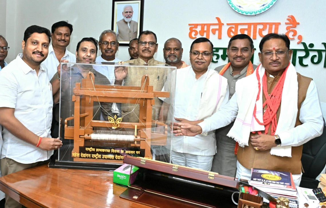 प्रधानमंत्री नरेंद्र मोदी द्वारा दिए गए “वोकल फॉर लोकल” के मंत्र का उल्लेख करते हुए मुख्यमंत्री ने कहा कि यह समय हमारे पारंपरिक उत्पादों और हुनर को प्रोत्साहन देने का है। हथकरघा उद्योग केवल आजीविका का माध्यम नहीं, बल्कि सांस्कृतिक चेतना का जीवंत प्रतीक है, जिसे बुनकर समाज आज भी सहेजे हुए है। इस अवसर पर समाज के सदस्यों ने मुख्यमंत्री को बुनकरों द्वारा निर्मित करघा (कपड़ा बुनने की पारंपरिक मशीन) की प्रतिकृति भेंट की। मुख्यमंत्री ने कहा कि आपकी यह भेंट न केवल आपके सम्मान और भावनाओं का प्रतीक है, बल्कि सृजन, परंपरा और हमारे प्रदेश के सांस्कृतिक मूल्यों का भी प्रतीक है। मुख्यमंत्री साय ने आश्वस्त किया कि छत्तीसगढ़ सरकार बुनकर समाज के हर संभव सहयोग के लिए पूर्णतः प्रतिबद्ध है और उनके सर्वांगीण विकास को सर्वोच्च प्राथमिकता दे रही है। उन्होंने कहा कि आने वाला समय बुनकरों के सम्मान, समृद्धि और सशक्तिकरण का होगा। इस अवसर पर बुनकर समाज के राष्ट्रीय उपाध्यक्ष महेश देवांगन, पुरुषोत्तम देवांगन, धनेश देवांगन, गजेंद्र देवांगन सहित अन्य वरिष्ठ सदस्य उपस्थित थे।