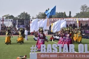 बस्तर संभाग के सातों जिलों और नुवा बाट के खिलाड़ियों ने आकर्षक मार्चपास्ट प्रस्तुत कर दर्शकों को किया मंत्रमुग्ध