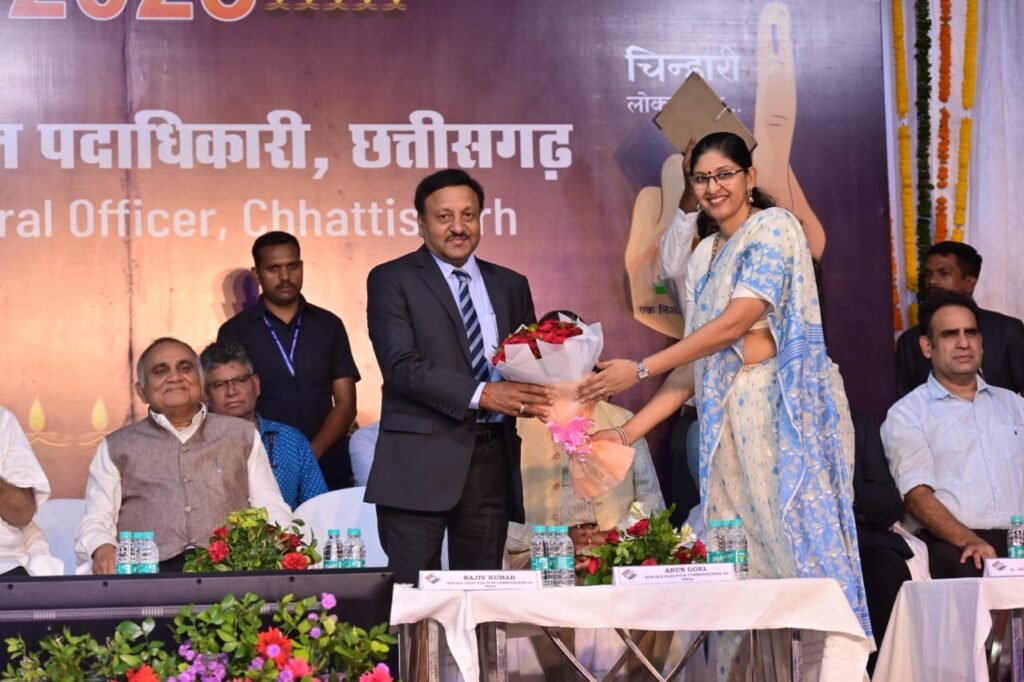 मुख्य निर्वाचन आयुक्त श्री राजीव कुमार की अगुआई में भारत निर्वाचन आयोग का दल छत्तीसगढ़ में आगामी विधानसभा निर्वाचन के लिए की जा रही प्रारंभिक तैयारियों की समीक्षा के लिए आया हुआ है। आज मुख्य निर्वाचन आयुक्त श्री कुमार ने निर्वाचन आयुक्त श्री अनूप चन्द्र पांडेय और श्री अरुण गोयल के साथ बूढ़ा तालाब विवेकानंद सरोवर परिसर में आयोजित मतदाता महोत्सव में शिरकत की। उनके साथ निर्वाचन आयोग के आयुक्त श्री अनूप चन्द्र पांडेय और श्री अरुण गोयल तथा अन्य सदस्यों सहित राज्य की मुख्य निर्वाचन पदाधिकारी सुश्री रीना बाबा साहब कंगाले ने बूढ़ा तालाब में दीप दान कर मतदाताओं को मतदान के लिए प्रेरित किया। सीईसी श्री कुमार और राज्य की मुख्य निर्वाचन पदाधिकारी सुश्री कंगाले ने अधिक से अधिक लोगों से दीप दान के साथ मतदान करने का संकल्प लेने की अपील की। महोत्सव में भारत निर्वाचन आयोग ने मतदाताओं को मतदान का महत्व भी बताया। सुश्री रीना बाबा साहब कंगाले ने मतदाता महोत्सव के बारे में जानकारी दी। उन्होंने राज्य चल रहे मतदान और निर्वाचन संबंधी जागरूकता कार्यक्रमों की जानकारी भी दी। कलेक्टर डॉ. सर्वेश्वर भुरे ने भारत निर्वाचन आयोग का आभार प्रदर्शन किया और आश्वस्त किया कि आयोग द्वारा निर्धारित नियमों, प्रक्रियाओं और मापदण्डों के अनुसार ही राज्य में विधानसभा निर्वाचन सम्पन्न कराया जाएगा।