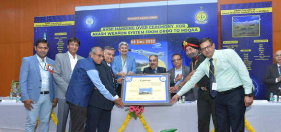 रक्षा अनुसंधान और विकास संगठन (DRDO) ने 03 दिसंबर, 2022 को हैदराबाद में मिसाइल सिस्टम क्वालिटी एश्योरेंस एजेंसी (MSQAA) को आकाश वेपन सिस्टम (भारतीय सेना संस्करण) के सीलबंद विवरण (AHSP) रखने वाले प्राधिकरण को सौंप दिया। अनुसंधान और विकास प्रयोगशाला (DRDL), जिसने एक नोडल एजेंसी के रूप में, आकाश हथियार प्रणाली को डिजाइन और विकसित किया है। एएचएसपी हस्तांतरण के हिस्से के रूप में प्रोजेक्ट आकाश द्वारा तकनीकी विनिर्देश और गुणवत्ता दस्तावेज और पूर्ण हथियार प्रणाली तत्वों की ड्राइंग को सील कर दिया गया और एमएसक्यूएए को सौंप दिया गया।