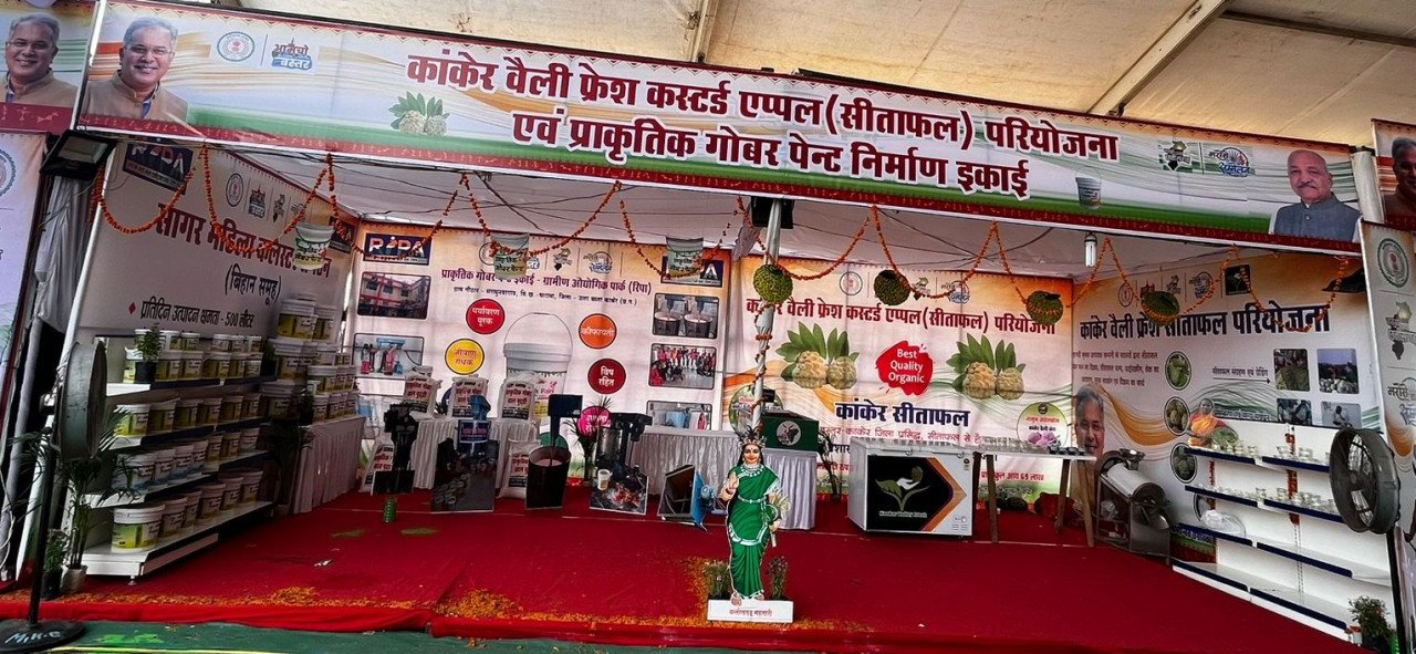 इसी तरह, सुकमा से टेराकोटा शिल्प और पुनर्निर्मित स्कूल, कस्टर्ड सेब, जामुन, आम का गूदा, कस्टर्ड सेब आइसक्रीम और कांकेर जिले से कॉकटेल, नारायणपुर जिले से बाजरा उत्पाद और बांस शिल्प, कोंडागांव जिले से बेलमेटल आभूषण, सजावटी सामान और कोल्ड प्रेस्ड नारियल तेल , दंतेवाड़ा। जिले से डेनेक्स और बीजापुर जिले से चिकन प्रसंस्करण द्वारा कपड़े की सिलाई का प्रदर्शन किया गया।
