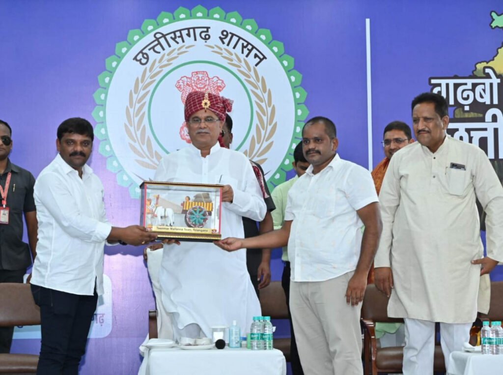 छत्तीसगढ़ के विकास मॉडल को देखने आए तेलंगाना के किसानों ने छत्तीसगढ़ में शुरू की गई किसान हितैषी नीतियों और योजनाओं की सराहना की। छत्तीसगढ़ सरकार द्वारा राजनांदगांव और दुर्ग जिलों में चलाए जा रहे किसान हितैषी कार्यक्रमों को देखने के बाद तेलंगाना के विभिन्न जिलों के 500 किसानों ने आज सुबह अपने आवास पर मुख्यमंत्री श्री भूपेश बघेल से अपने अनुभव साझा किए. कार्यक्रम का उद्घाटन करते हुए तेलंगाना के किसानों के प्रतिनिधियों ने पारंपरिक गोंगडी पोशाक में मुख्यमंत्री का स्वागत किया और उन्हें धन्यवाद दिया और एक मॉडल बैलगाड़ी प्रदर्शित की।