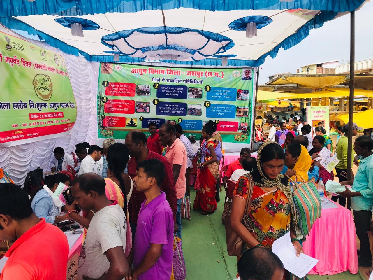 जिला आयुर्वेदिक कार्यालय जशपुर से प्राप्त जानकारी के अनुसार 3 जून 2023 से 9 जून 2023 तक कुल 2218 मरीजों का दवा वितरण एवं पंचकर्म कर नाड़ी के माध्यम से नि:शुल्क उपचार किया गया। स्वेद, सर्वांग स्वेद, नस्य और शिरो धारा। मरीजों की जांच कर इलाज किया गया। विभाग मुख्य रूप से पुरानी गठिया, बुखार, गठिया, त्वचा रोग, पेट फूलना, पुरानी सांस की बीमारी, विकलांगता, पुरानी फेफड़ों की बीमारी और पेट की बीमारियों का इलाज करता है।