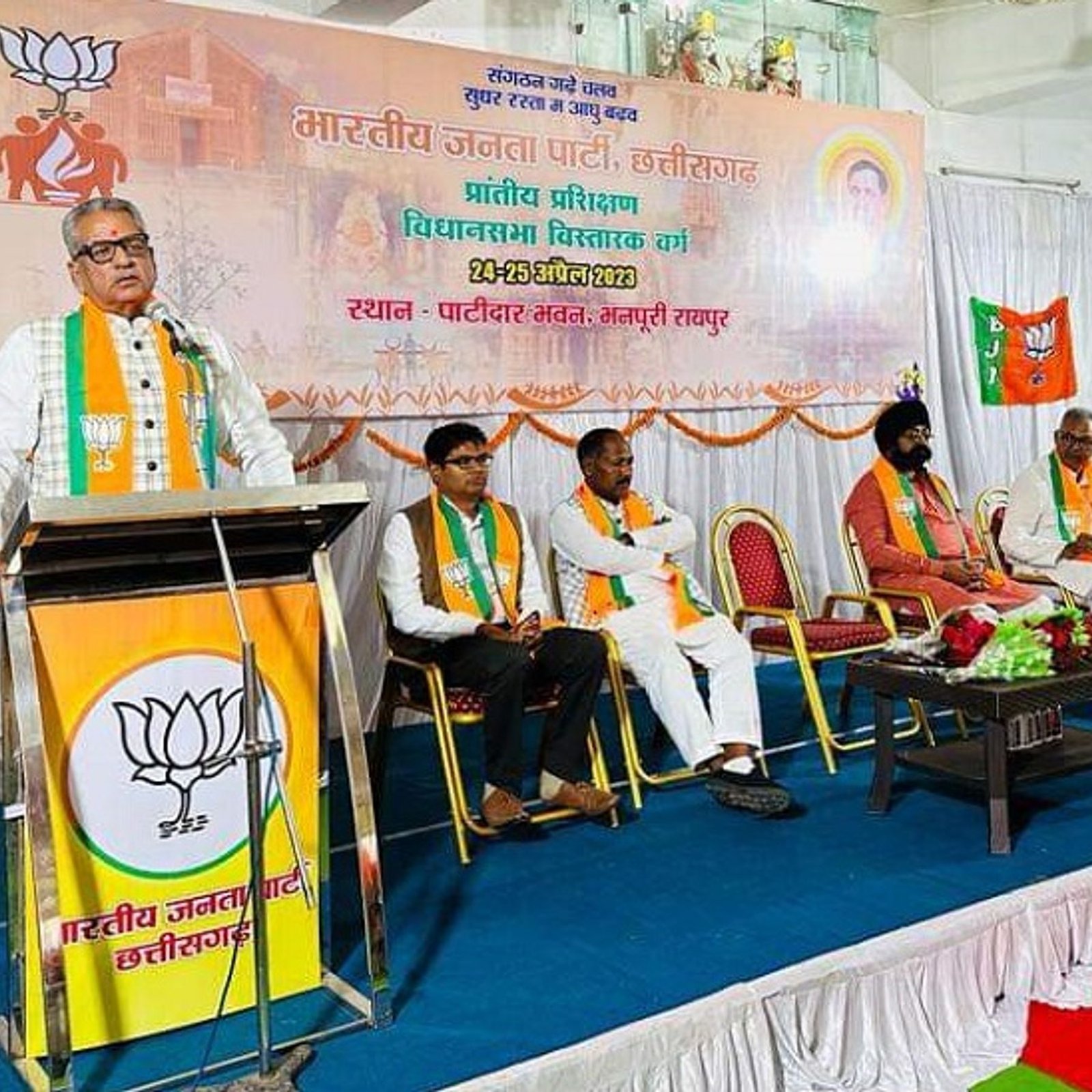 विस्तृत प्रशिक्षण कार्यक्रम पर बोलते हुए क्षेत्रीय संगठन के महासचिव अजय जम्वाल ने कहा कि मानसो की कथनी और करनी एक जैसी होनी चाहिए। पवन साईं प्रदेश महामंत्री संगठन ने बूथ प्रबंधन, बूथ सशक्तिकरण और बूथ जिताने के अभियान के बारे में विस्तार से चर्चा की. नेता प्रतिपक्ष नारायण चंदेल ने केंद्र सरकार की उपलब्धियों और परिणामों के बारे में बताया। राज्य भाजपा उपाध्यक्ष शिवरतन शर्मा ने कहा कि राज्य सरकार की विफलता और अराजकता को जनता के सामने पेश किया जाना चाहिए। प्रदेश प्रवक्ता दीपक महस्के ने सोशल मीडिया, नमो एप, सरल पोर्टल, व्हाट्सएप जैसे माध्यमों से जनता के बीच निरंतर संपर्क बनाए रखने के बारे में विस्तार से चर्चा की। इस दौरान भाजपा के प्रदेश उपाध्यक्ष भूपेंद्र सवानी, भाजपा के प्रदेश महासचिव ओपी चौधरी, भाजपा प्रवक्ता अनुराग सिंहदेव आदि मौजूद रहे।