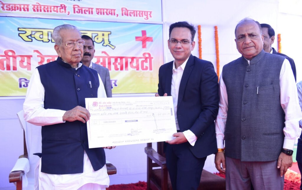 राज्यपाल श्री हरिचंदन को बिलासपुर जिले के राजकीय अंशदान के लिए 1 लाख 95 हजार रुपये। राज्यपाल ने स्वास्थ्य एवं समाज कल्याण के क्षेत्र में रेडक्रॉस सोसायटी द्वारा किये जा रहे कार्यों की सराहना की.