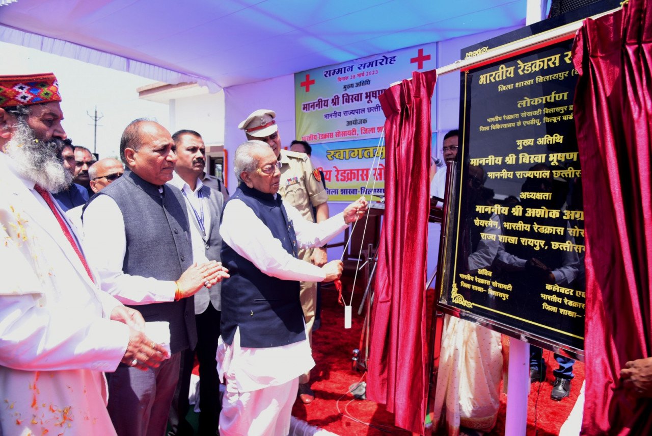 राज्यपाल श्री विश्वभूषण हरिचंदन आज बिलासपुर स्थित अटल बिहारी वाजपेयी विश्वविद्यालय परिसर में इंडियन रेड क्रॉस सोसाइटी द्वारा आयोजित कार्यक्रम में शामिल हुए। इस अवसर पर राज्यपाल ने इंडियन रेडक्रॉस सोसायटी बिलासपुर द्वारा सुसज्जित जिला चिकित्सालय के तीन वार्डों एचडीयू, चिल्ड्रन वार्ड एवं एनआरसी का लोकार्पण किया. कलेक्टर श्री सौरभ कुमार ने लगभग रुपये का चेक भेंट किया।