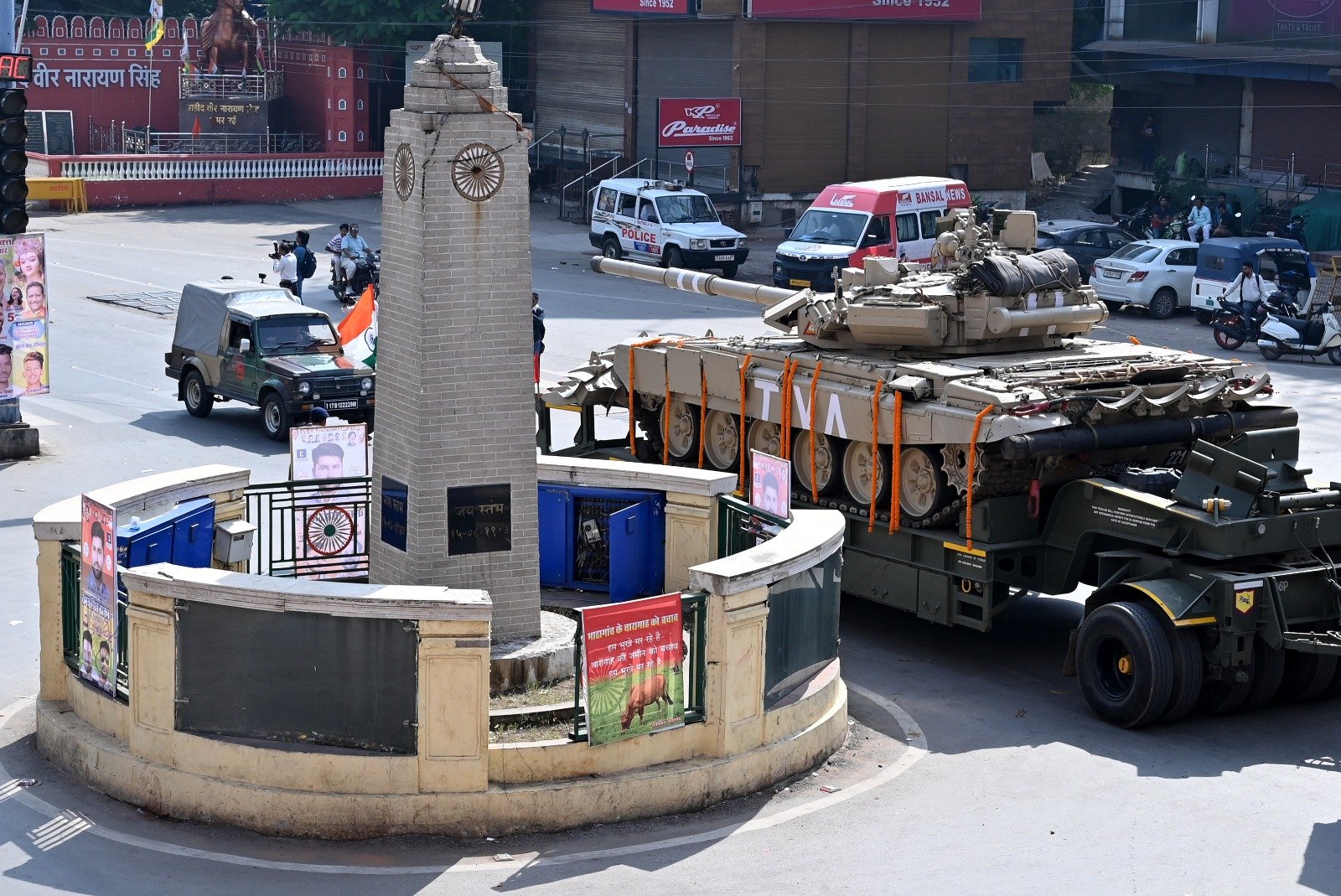 आज राजधानी रायपुर पहुंचे भारतीय सेना के भीष्म टैंक और अन्य आर्टिलरी का शानदार स्वागत किया गया। इसके बाद एक रैली के रूप में टैंक एवं सैन्य उपकरण रायपुर शहर के तेलीबांधा, मरीन ड्राइव, कलेक्ट्रेट, जयस्तंभ और आश्रम चौक होते हुए साइंस कॉलेज मैदान तक मैदान पहुंचा।
