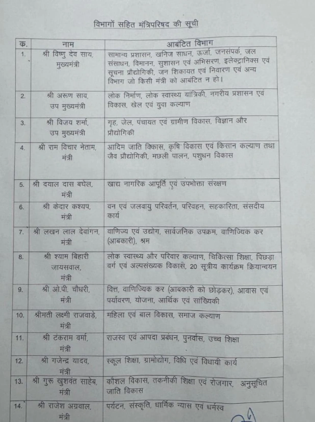 छत्तीसगढ़ में नई ऊर्जा का संचार: मंत्रियों में विभागों का बँटवारा, विकास की राहें हुईं आसान!