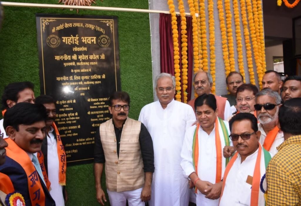मुख्यमंत्री श्री भूपेश बघेल ने आज राजधानी रायपुर में एम्स के समीप टाटीबंध में श्रीगहोई वैश्य समाज रायपुर द्वारा निर्मित नवनिर्मित भवन का लोकार्पण किया. मुख्यमंत्री श्री बघेल ने इस अवसर पर राष्ट्रकवि मैथिलीशरण गुप्त को नमन करते हुए कहा कि यह भवन एम्स में मरीजों के इलाज के दौरान मरीजों एवं उनके परिजनों के ठहरने की व्यवस्था के लिए सोसायटी द्वारा बनाया गया है. श्रीगहोई वैश्य समाज रायपुर ने सेवाभाव से यह बहुत ही सराहनीय एवं पुनीत कार्य किया है।