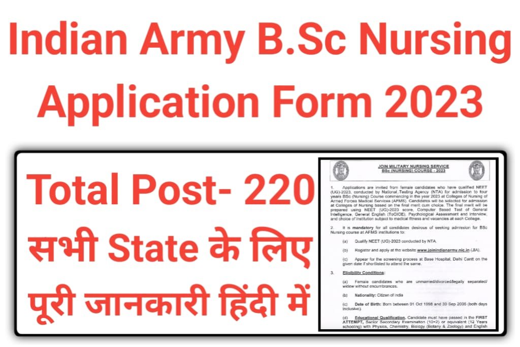 इंडियन आर्मी बैचलर ऑफ नर्सिंग कोर्स एप्लीकेशन फॉर्म 2023- इंडियन आर्मी से बैचलर ऑफ नर्सिंग कोर्स करने का सुनहरा मौका….