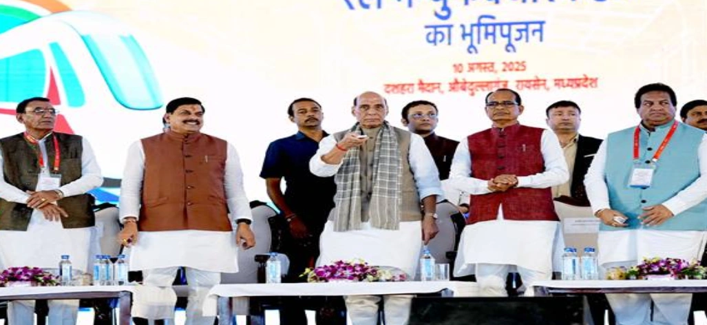 केन्द्रीय रक्षा मंत्री श्री सिंह “विकास की नई पहचान – स्वदेशी अभियान” के अंतर्गत भोपाल जिले की सीमा पर रायसेन जिले के ग्राम उमरिया में 1800 करोड़ रुपए की लागत से स्थापित होने वाली अत्याधुनिक रेल कोच निर्माण इकाई का भूमि-पूजन कर संबोधित कर रहे थे। कार्यक्रम में केन्द्रीय कृषि एवं किसान कल्याण मंत्री श्री शिवराज सिंह चौहान और मुख्यमंत्री डॉ. मोहन यादव विशेष रूप से उपस्थित थे।