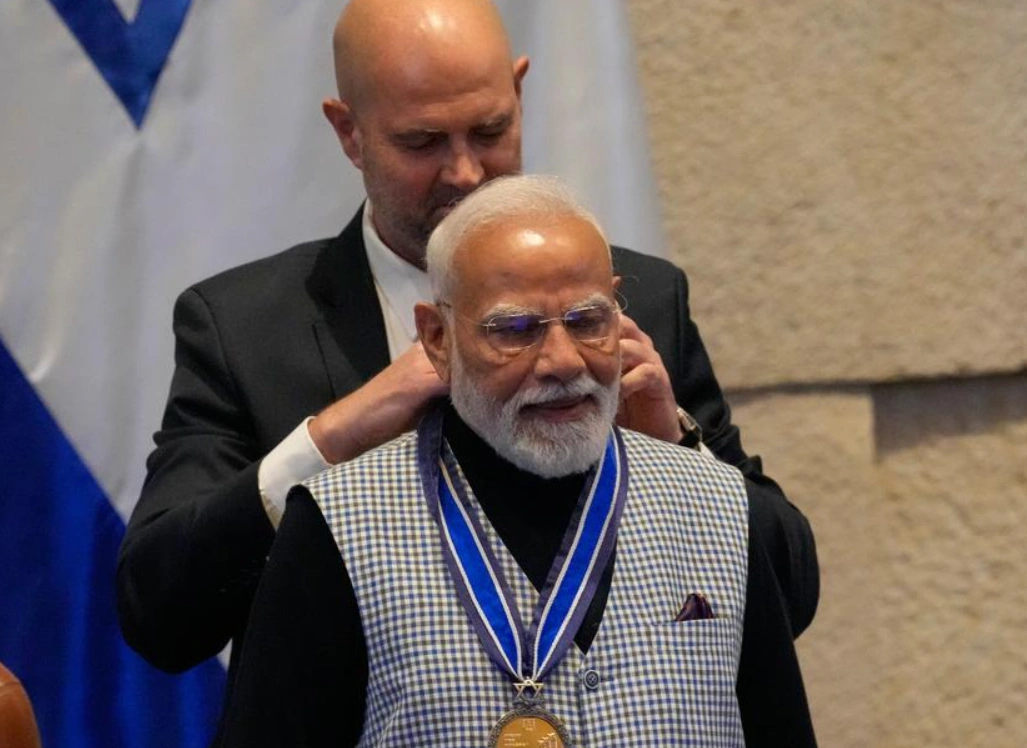इजरायल की संसद के स्पीकर अमीर ओहाना ने किया सम्मानित-इजरायल संसद के स्पीकर अमीर ओहाना ने पीएम मोदी को यह प्रतिष्ठित पदक उनके संसद में दिए गए संबोधन के बाद प्रदान किया। यह सम्मान भारत के लिए गर्व का क्षण है और दर्शाता है कि भारत के नेतृत्व को अंतरराष्ट्रीय स्तर पर कितनी मान्यता मिल रही है।