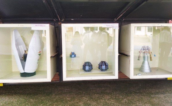 इसरो द्वारा लॉन्च किए गए वाहन, इसरो के कार्यक्रमों के मॉडल गगनयान, चंद्रयान के साथ ‘नाविक’ और ‘भुवन’ उपग्रह भी इस बस में देखे गए। इससे आदिवासी बच्चे जान सकेंगे कि इसरो कैसे काम करता है।