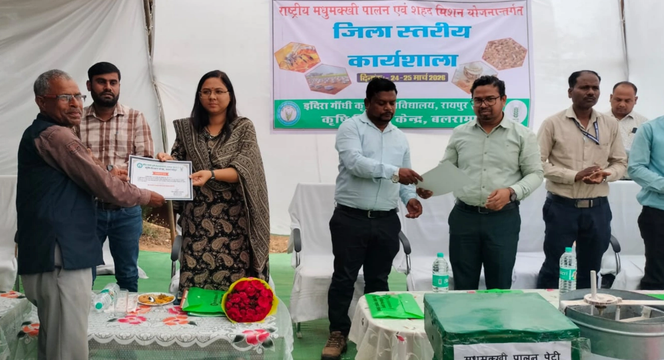 रायपुर, 25 मार्च 2026-मधुमक्खी पालन शहद, मोम और पराग उत्पादन के लिए एक अत्यंत लाभदायक कृषि-आधारित व्यवसाय है। भारत में वैज्ञानिक तकनीक से मधुमक्खियों को बक्सों में पालकर, मौसमी फूलों के अनुसार स्थानांतरित कर बड़े पैमाने पर शहद निकाला जाता है, जो किसानों की आय बढ़ाने का एक प्रमुख साधन है। मधुमक्खी पालन अपनाने पर किसानों की आय में 20 से 25 प्रतिशत तक वृद्धि संभव है।कृषि आधारित आय को सुदृढ़ करने और किसानों को अतिरिक्त रोजगार के अवसर उपलब्ध कराने के उद्देश्य से राज्य स्तर पर मधुमक्खी पालन एवं शहद उत्पादन विषय पर दो दिवसीय कार्यशाला सह प्रशिक्षण कार्यक्रम का सफल आयोजन किया गया। इस प्रशिक्षण में जिले भर से आए किसानों ने उत्साहपूर्वक भाग लिया।जिला पंचायत सीईओ बलरामपुर श्रीमती नयनतारा सिंह तोमर ने कहा कि वर्तमान समय में किसानों को पारंपरिक एकल फसल पद्धति को आगे बढ़ते हुए फसल विविधिकरण अपनाने की आवश्यकता है। उन्होंने बताया कि धान के साथ-साथ दलहन, तिलहन एवं मधुमक्खी पालन जैसे कृषि आधारित व्यवसाय अपनाकर किसान अपनी आय में उल्लेखनीय वृद्धि कर सकते हैं।