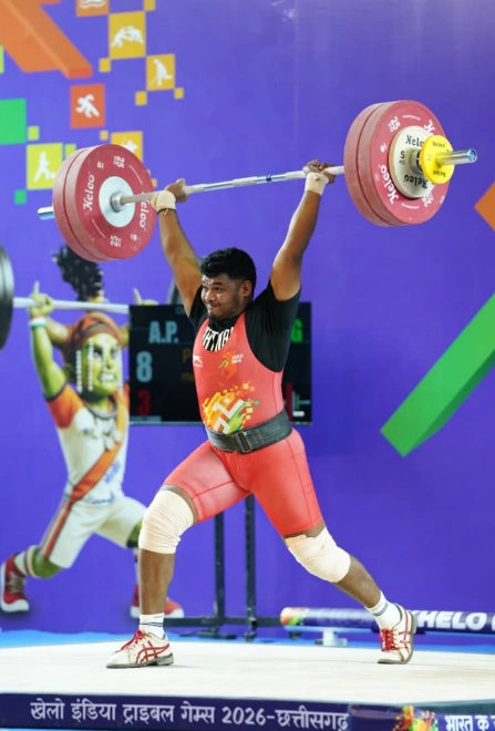 रायपुर, 28 मार्च 2026- खेलो इंडिया ट्राइबल गेम्स 2026 के अंतर्गत पंडित रविशंकर शुक्ल यूनिवर्सिटी के खेल मैदान में आयोजित वेटलिफ्टिंग प्रतियोगिता के सीनियर पुरुष 94 किलोग्राम वर्ग में शानदार प्रदर्शन देखने को मिला। 28 मार्च 2026 को आयोजित इस मुकाबले में देशभर के प्रतिभाशाली खिलाड़ियों ने अपनी ताकत और तकनीक का बेहतरीन प्रदर्शन किया।