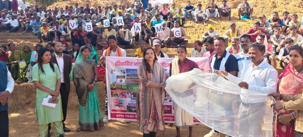 कार्यक्रम के दौरान हितग्राही विनोद कुमार एवं दलपत साई मेहरू राम को मछली जाल का वितरण किया गया। इससे मछली पालन गतिविधियों को प्रोत्साहन मिलेगा और ग्रामीणों में स्वरोजगार के प्रति उत्साह बढ़ेगा। हितग्राहियों ने बताया कि योजना से प्राप्त सहयोग के माध्यम से वे मछली पालन के साथ-साथ दलहन-तिलहन की खेती भी करेंगे, जिससे उनकी आय में निरंतर वृद्धि होगी और परिवार की आर्थिक स्थिति सुदृढ़ बनेगी।ग्रामीणों ने वीबी-जीराम जी योजना को आदिवासी बहुल, कृषि-आधारित जिले के लिए सर्वांगीण विकास और आत्मनिर्भरता की दिशा में एक महत्वपूर्ण पहल बताया। गांव आत्मनिर्भर होंगे, तभी भारत विकसित बनेगा के संकल्प के साथ कार्यक्रम का समापन किया गया। कार्यक्रम में जिल पंचायत सीईओ भारती चंद्राकर,जनप्रतिनिधि दिलीप वर्मा, पंचायत प्रतिनिधिगण, विभिन्न विभागों के अधिकारी-कर्मचारी तथा बड़ी संख्या में ग्रामीणजन उपस्थित रहे।